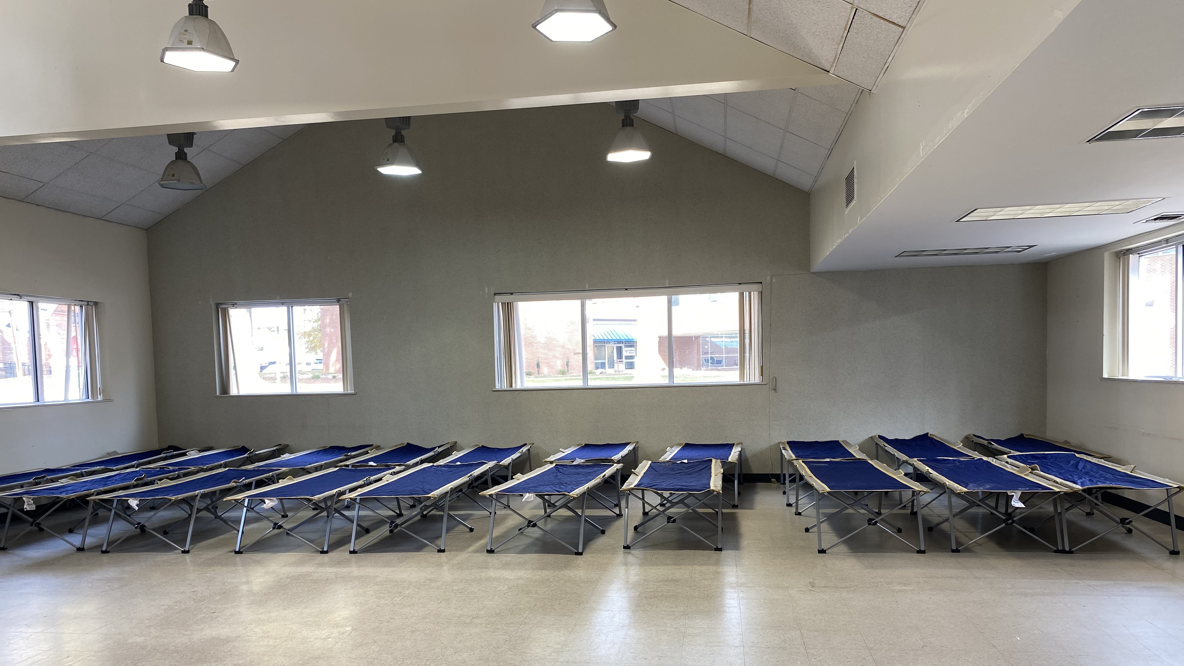 Cots in Annex 2 before they were placed for the overflow shelter that serves unhoused individuals.